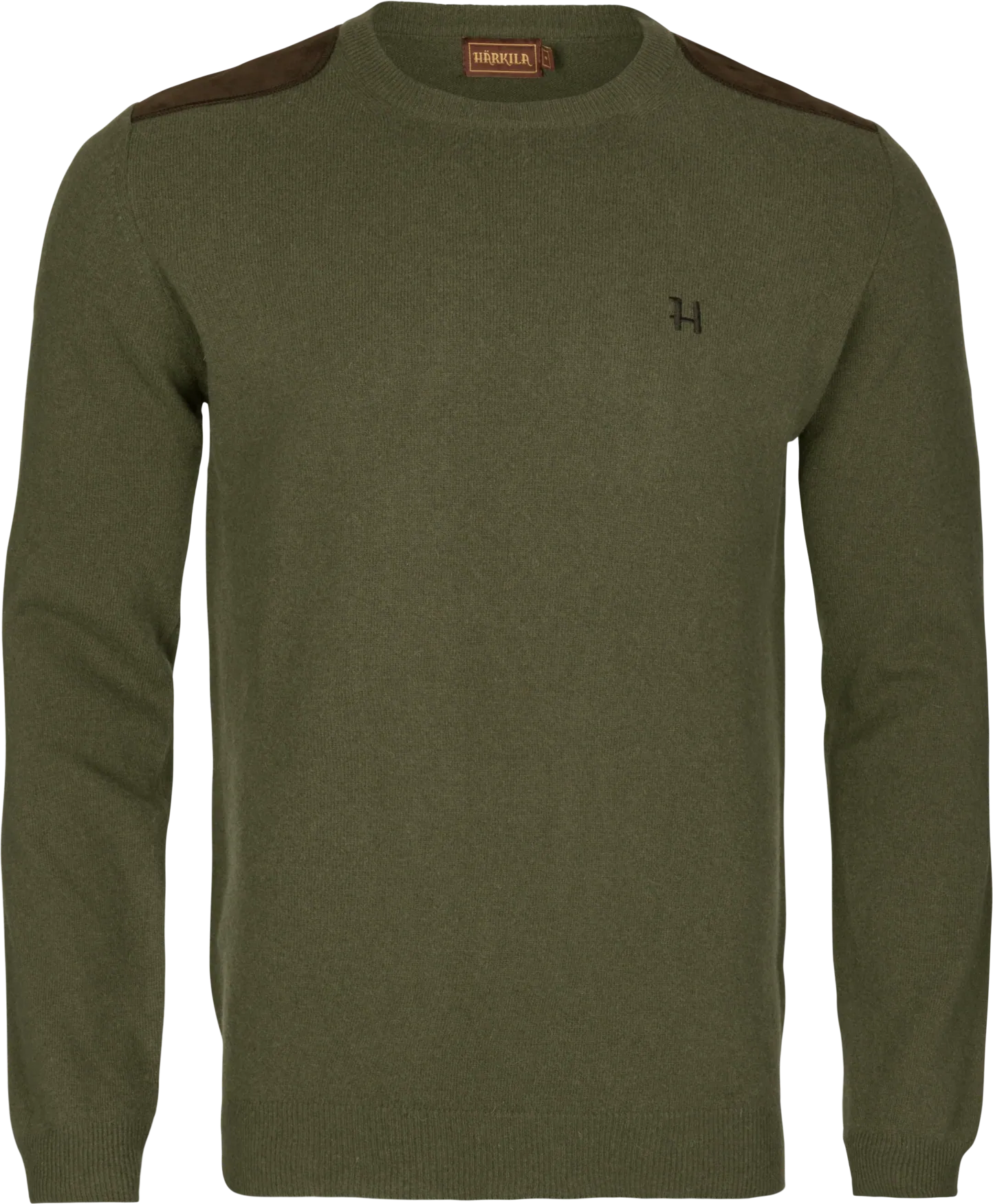 The Härkila Arran Pullover: a timeless wool sweater with micro-suede details, perfect for fall and winter. Versatile as a top layer or insulating midlayer. Comfortable fit, natural anti-bacterial and temperature-regulating properties. Stay stylish and cozy in colder seasons.