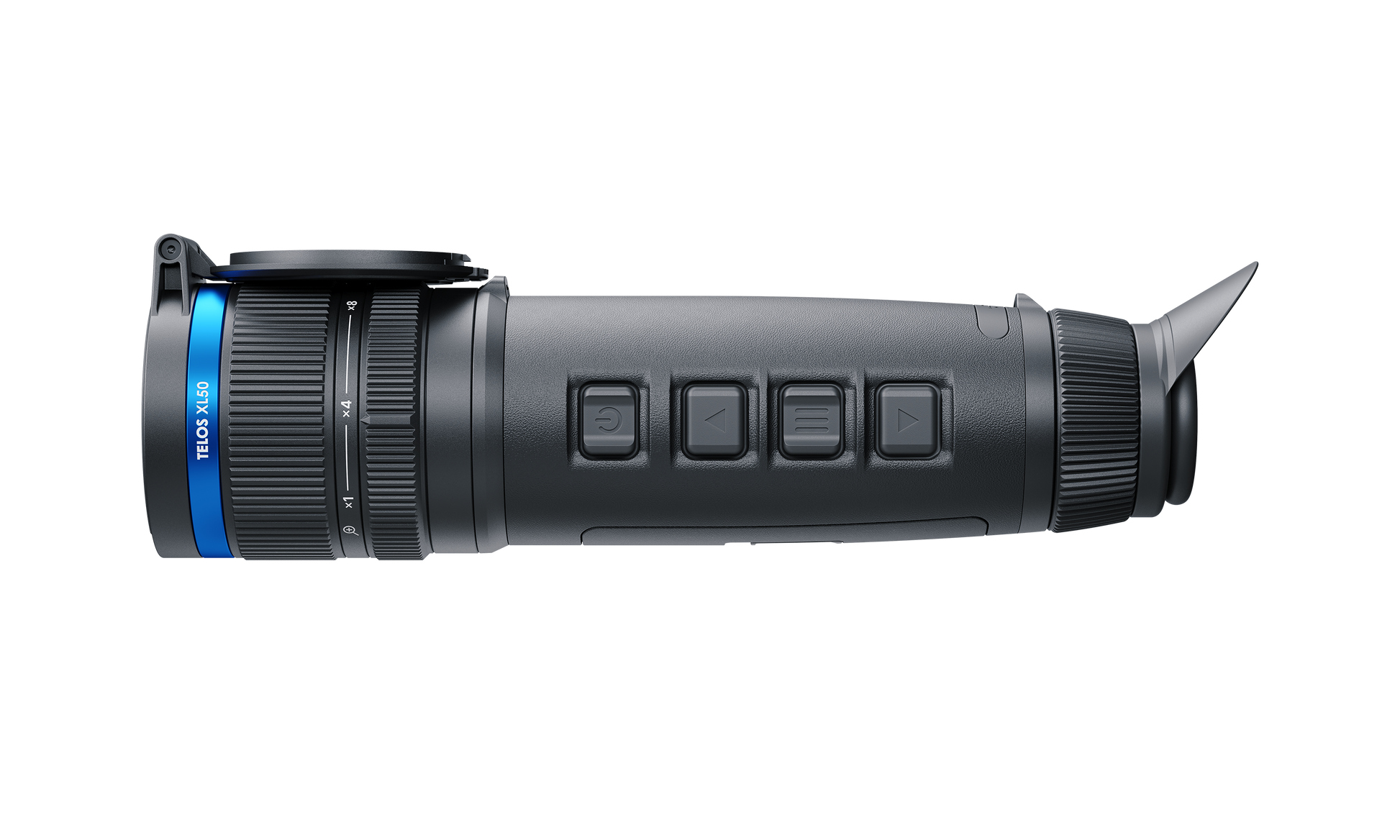 Ergonomics is at the forefront of the Telos XL50’s design, offering the user an observation experience that always remains comfortable thanks to a convenient, easy reach button layout along the top panel; an attachable hand strap that can be easily rotate from one side to the other without being removed in order to better cater to left- and right-handed users; and the addition of classically considered focusing and magnification rings located on the objective lens (one by one, as found on traditional camera objective lenses), allowing for smooth image magnification and quick focusing with minimal effort.